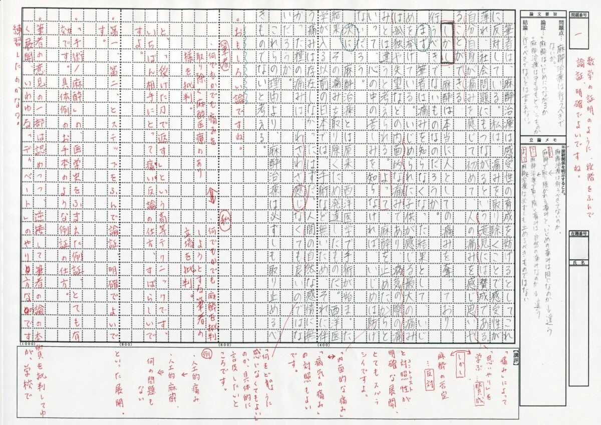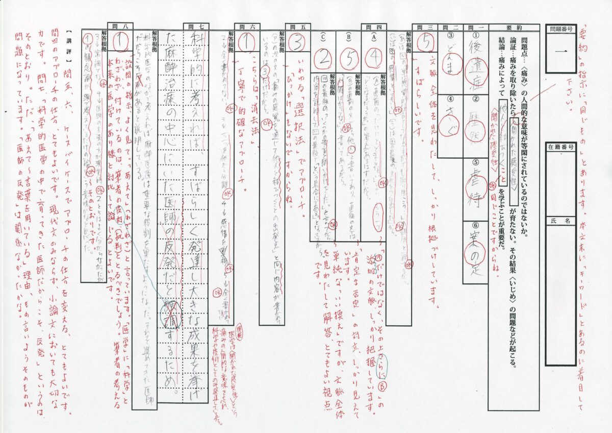 ・現代文/小論文 合格者の添削答案